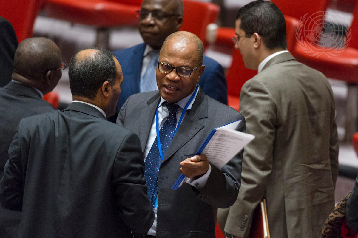 Mohammed Ibn Chambas (centre), Special Representative of the Secretary-General and Head of the United Nations Office for West Africa and the Sahel (UNOWAS), in the Security Council Chamber before his briefing to the Council.