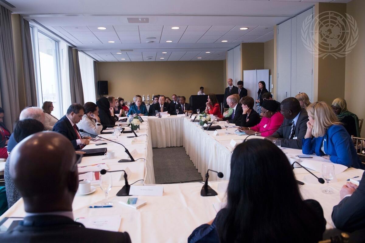Secretary-General Ban Ki-moon (center) delivers his remarks at Every Woman Every Child High Level Advisory Group Meeting and the launch of the Global Financing Facility Leaders Reports.