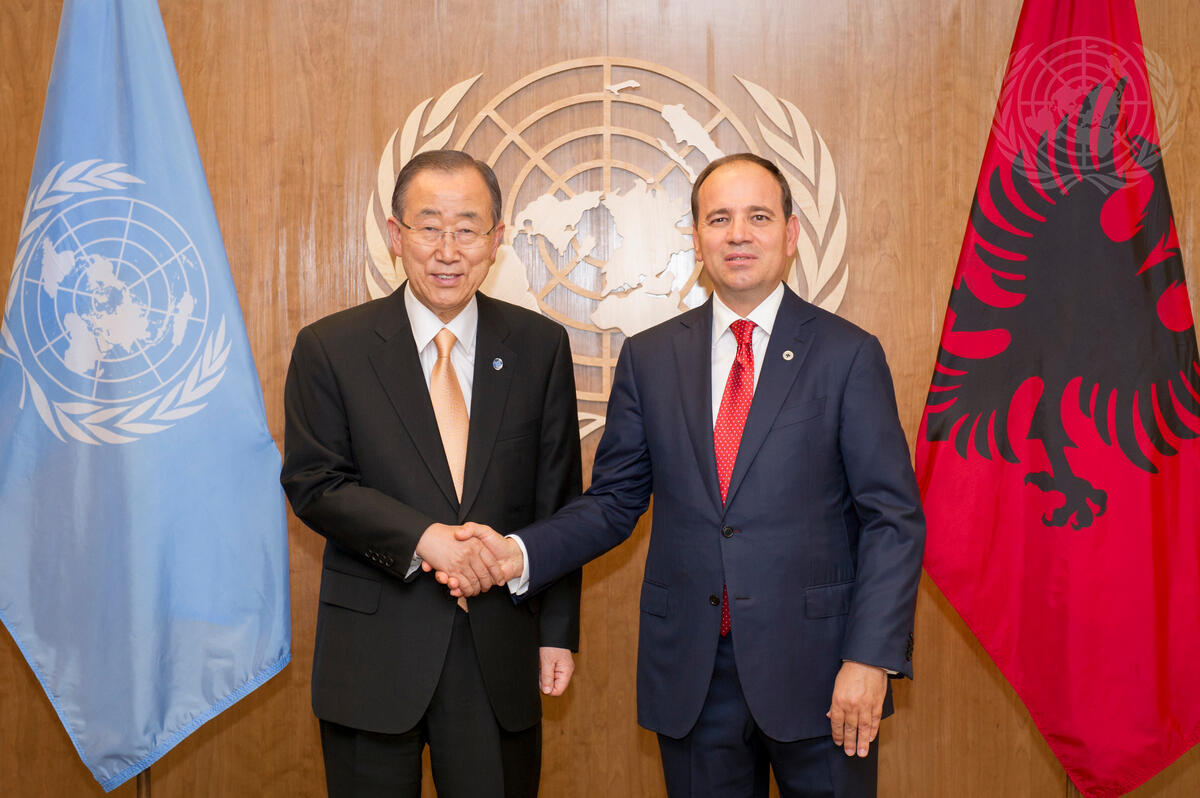 Secretary-General Ban Ki-moon (left), meets with Bujar Nishani, President of the Republic of Albania.