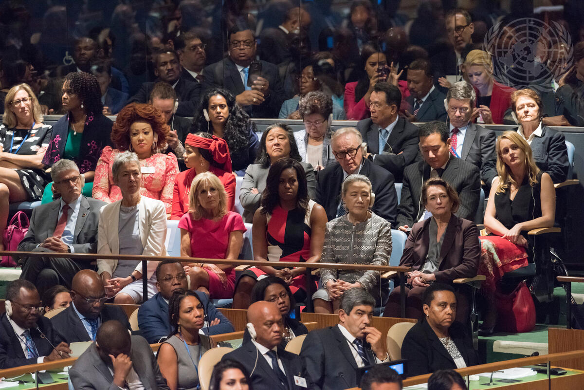 A view of the dignitaries' gallery at the opening of the general debate of the seventy-first session of the General Assembly. Those pictured include (gallery front row, from right): Marijcke Anne Thomson, wife of the General Assembly President; Yoo Soon-taek, wife of the UN Secretary-General; Michelle Obama, First Lady of the United States; Jill Biden, Second Lady of the United States; Mette Holm, wife of Mogens Lykketoft, outgoing President of the General Assembly; Mr. Lykketoft.