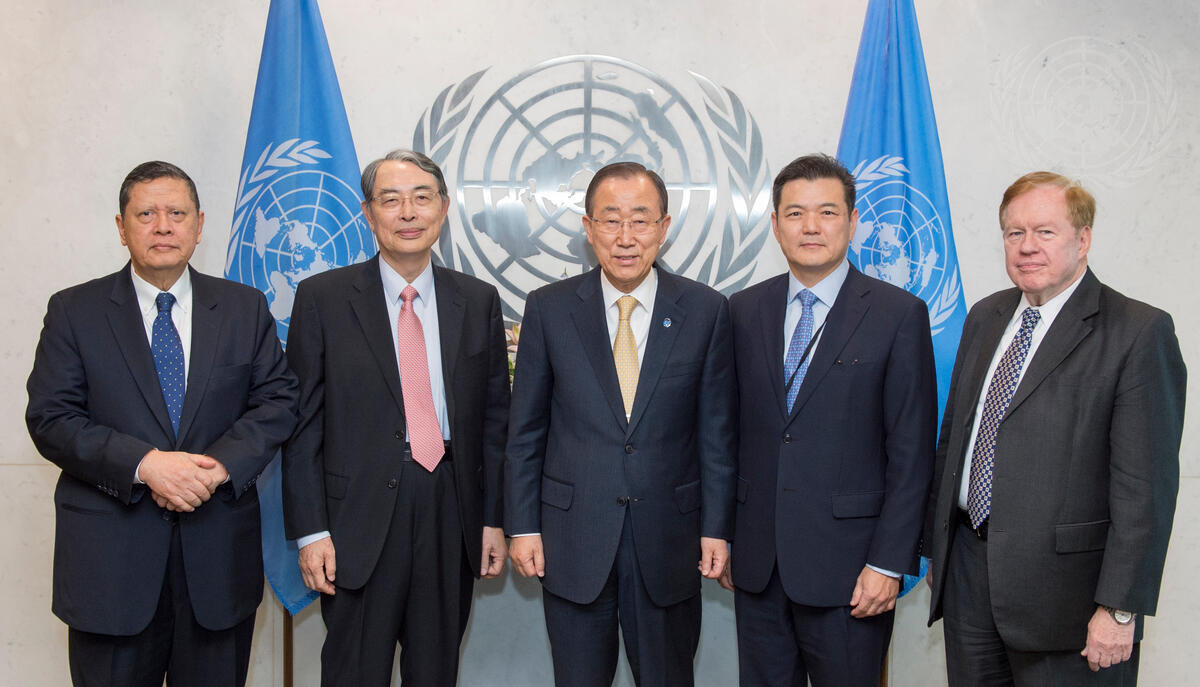 Secretary-General Ban Ki-moon (centre) meets with ""Sages Group for North Korean Human Rights"". Group photo from left to right: Marzuki Darusman, former United Nations Special Rapporteur on North Korea; Sang-Hyun Song, former President of the International Criminal Court; the Secretary-General; Jung-Hoon Lee, Republic of Korea Ambassador for North Korean Human Rights; and Robert King, United States Special Envoy for North Korean Human Rights Issues.