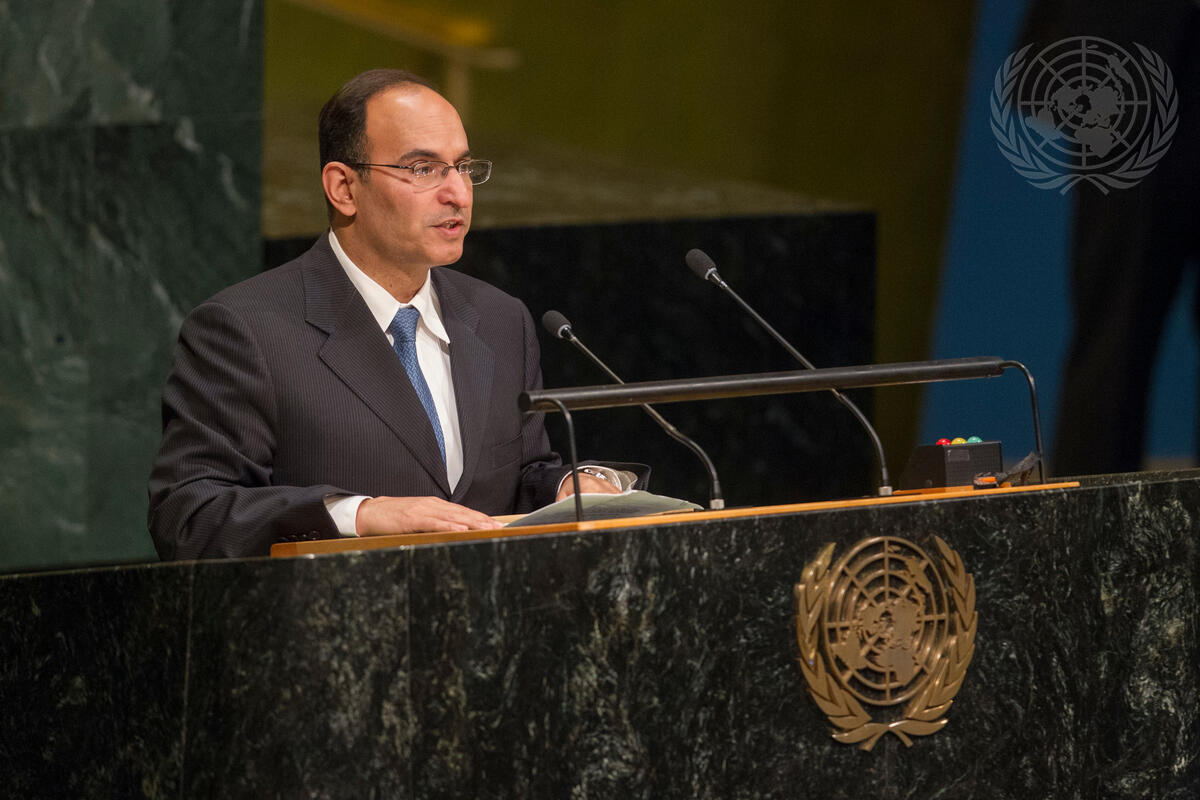 In the photo, Mansour Ayyad Alotaibi, Permanent Representative of the State of Kuwait to the United Nations, speaks on behalf of the Group of Asia-Pacific States.