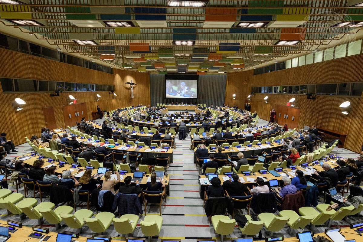 Wide view of the fourth informal interactive multi-stakeholder hearing of the intergovernmental conference and its preparatory process to adopt a global compact for safe, orderly and regular migration.