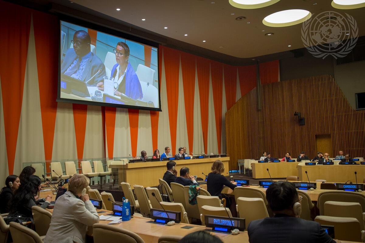 The Economic and Social Council (ECOSOC) launched a series of coordination and management meetings for its 2018 session. Inga Rhonda King (on screen, second from left on podium), Permanent Representative of Saint Vincent and the Grenadines to the United Nations and Vice-Presidents of ECOSOC, chairs the meeting.