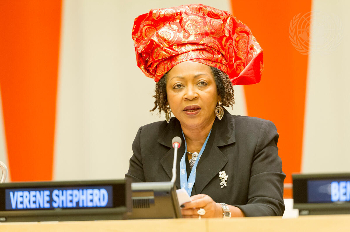 Verene Shepherd, University Director of the Institute for Gender and Development Studies at the Mona Campus of the University of the West Indies, addresses a briefing on “The Transatlantic Slave Trade and the Socio-economic Contributions of People of African Descent”. The event was organized by the United Nations Remember Slavery Programme, Department of Public Information (DPI), on the occasion of the International Day of Remembrance of Victims of Slavery and the Transatlantic Slave Trade (25 March).