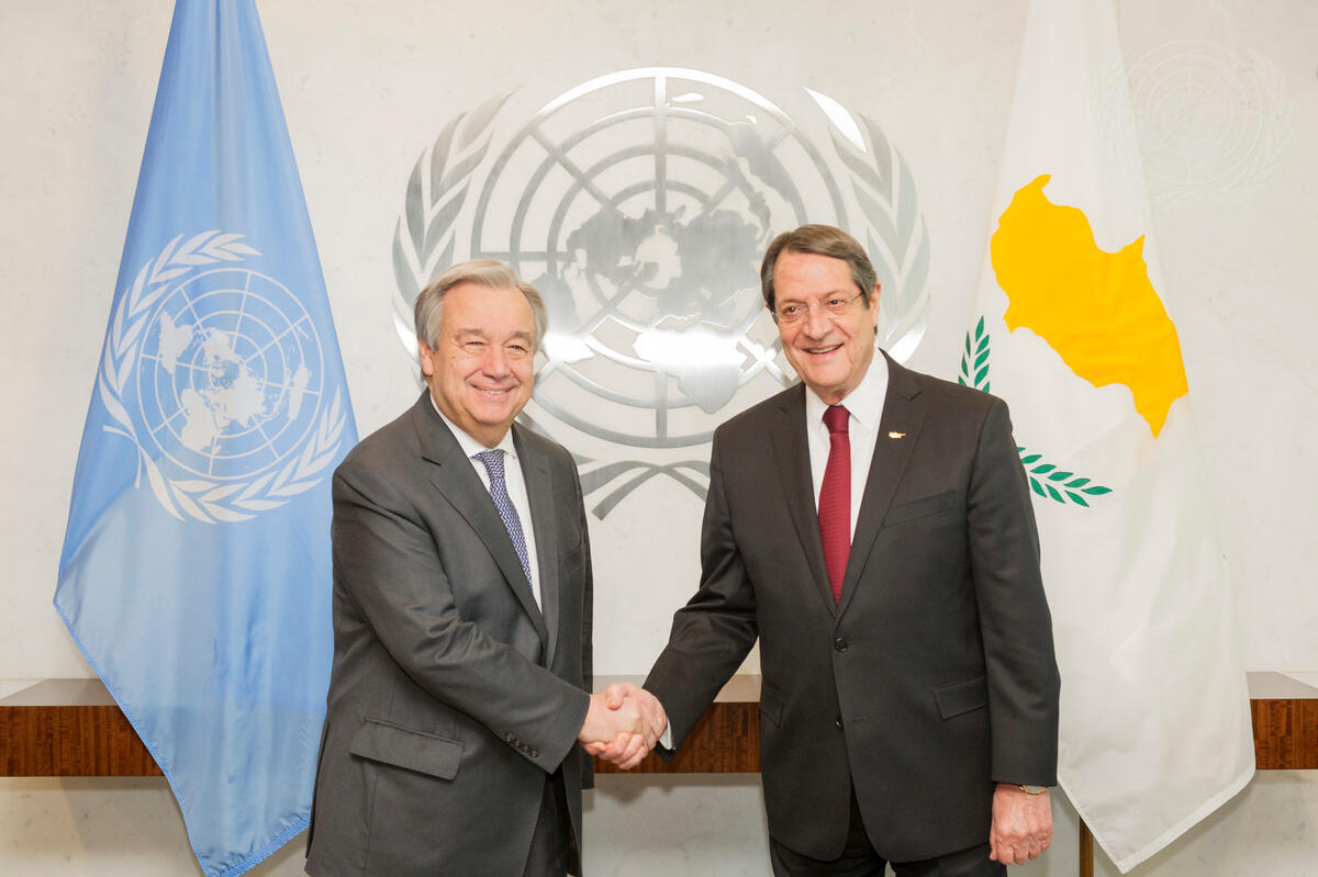Secretary-General António Guterres (left) meets with Nicos Anastasiades, President of the Republic of Cyprus.