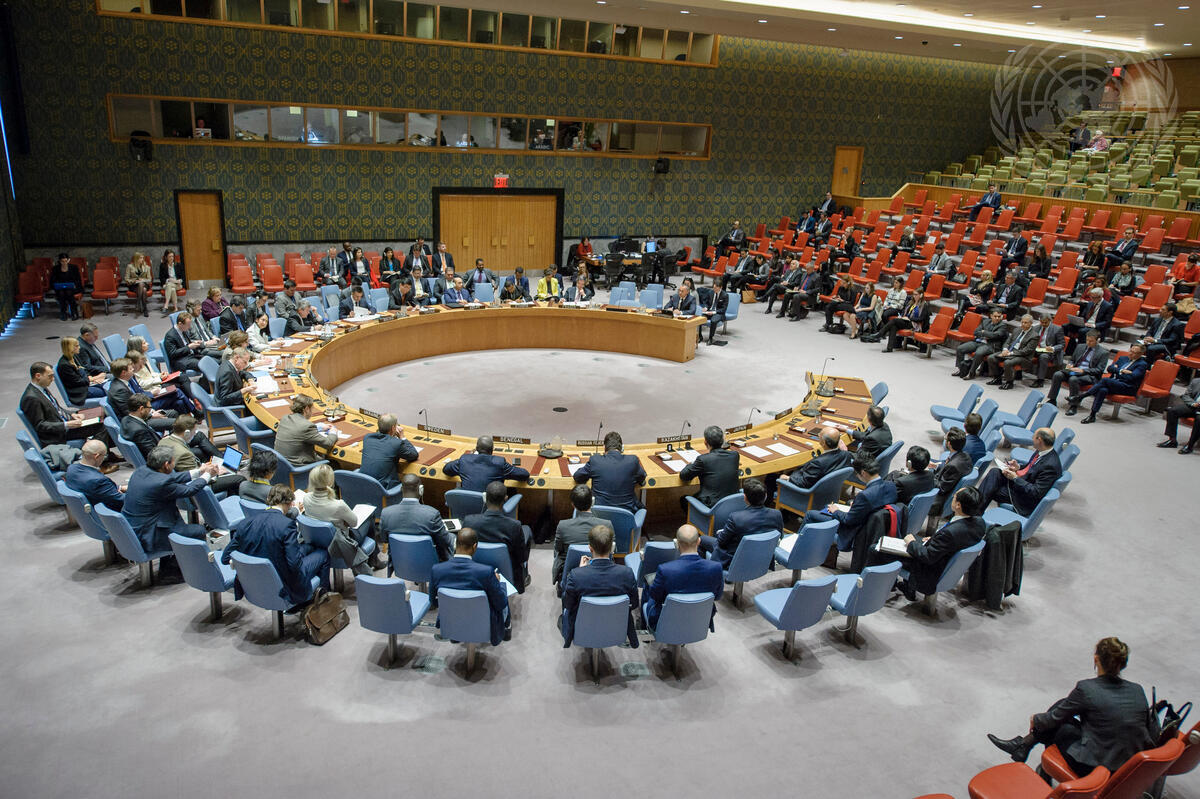 A wide view of the Security Council meeting on the Middle East situation, including the Palestinian question.