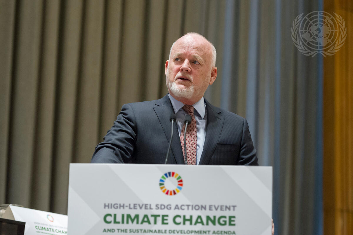 Peter Thomson, President of the seventy-first session of the General Assembly, addresses the Assembly’s high-level meeting on “Climate Change and the Sustainable Development Agenda”.