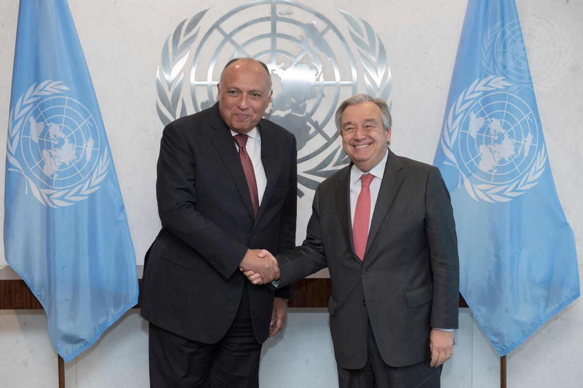 Secretary-General António Guterres (right) meets with Sameh Hassan Shokry Selim, Minister for Foreign Affairs of the Arab Republic of Egypt.