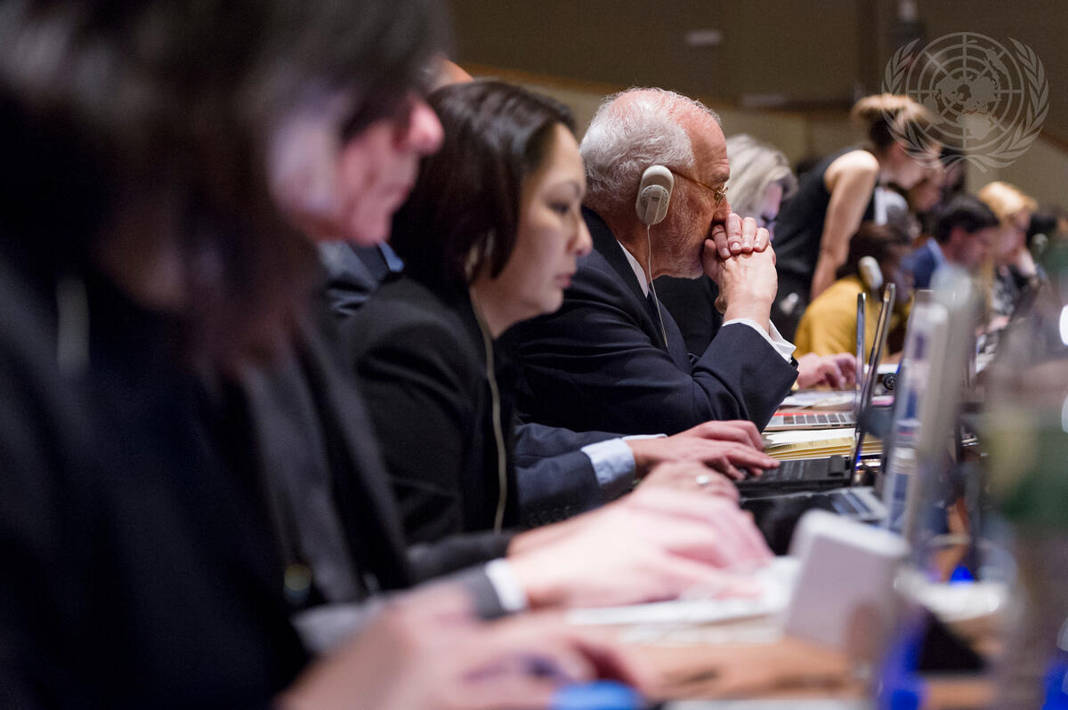 Partiicpants at the United Nations conference to negotiate a legally-binding instrument to prohibit nuclear weapons, leading towards their total elimination. Currently taking place at UN headquarters from 27 to 31 March, the conference is scheduled to resume from 15 June to 7 July.