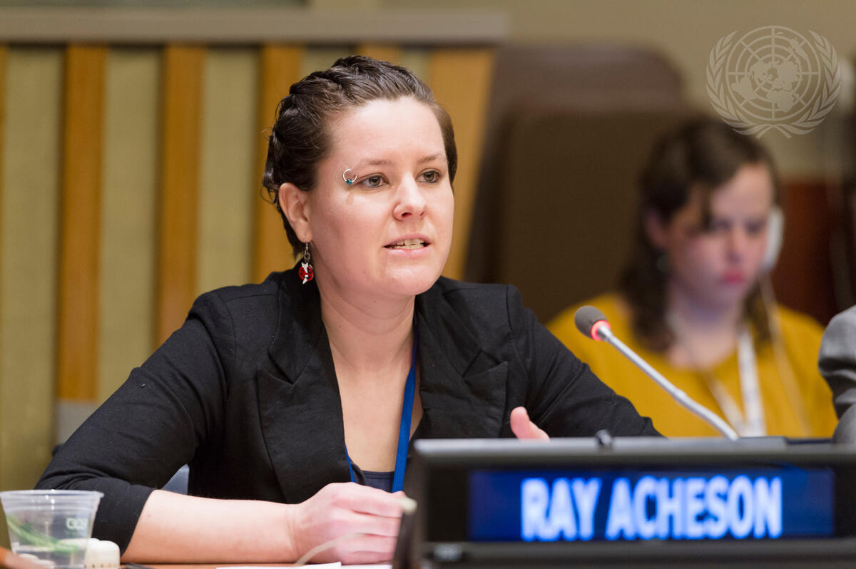 Ray Acheson, Director of Reaching Critical Will, addresses the United Nations conference to negotiate a legally-binding instrument to prohibit nuclear weapons, leading towards their total elimination.