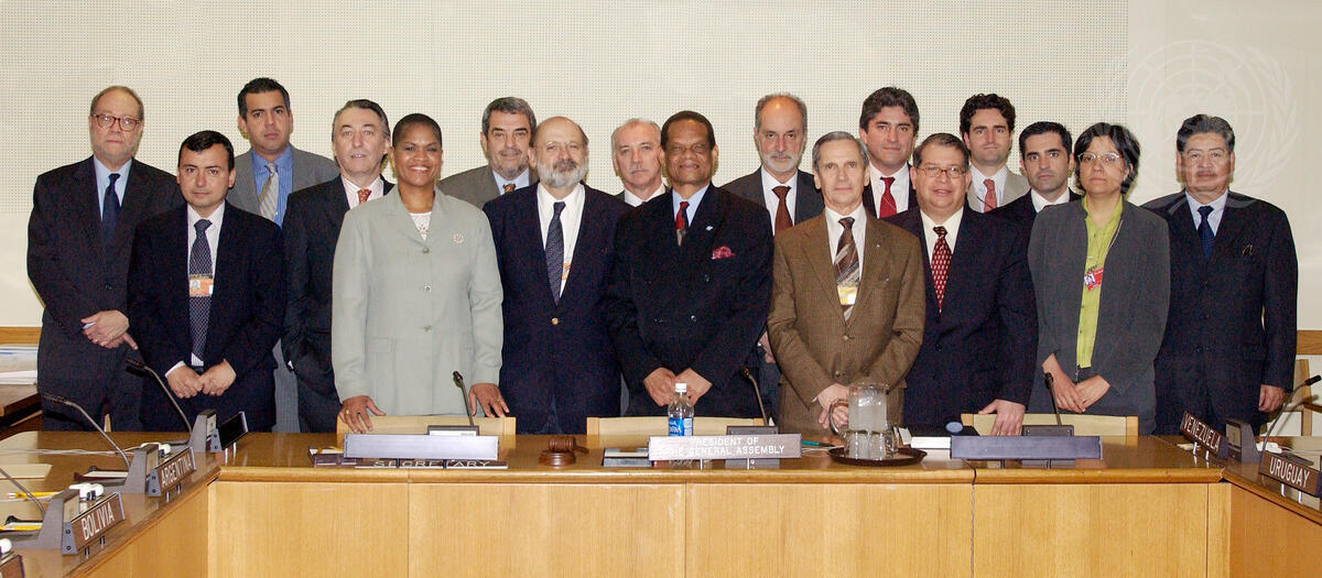 Julian R. Hunte ( fourth from left, front row) President of the 58th Session of the General Assembly meets with the Rio Group.