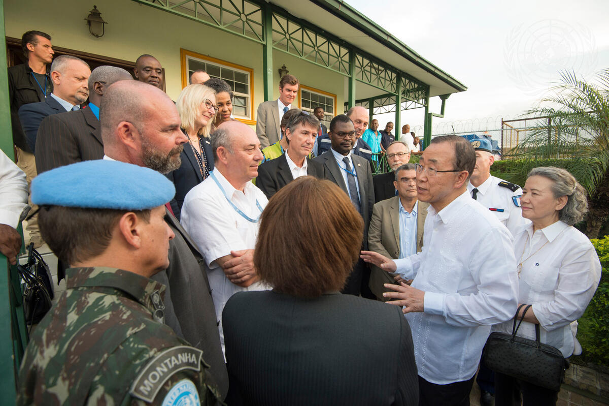 Secretary-General Ban Ki-moon (right) meets representatives of the United Nations Country Team (UNCT) and the United Nations Stabilization Mission in Haiti (MINUSTAH) during a trip to meet with communities affected by Hurricane Matthew, Government officials, and humanitarians working in the country.