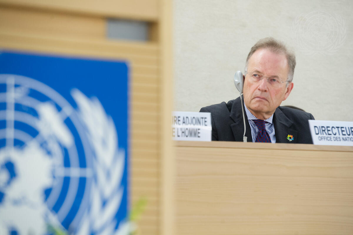 Michael Møller, Director-General of the United Nations Office at Geneva (UNOG), listens as Secretary-General António Guterres makes remarks during the opening of the thirty-seventh session of the Human Rights Council.