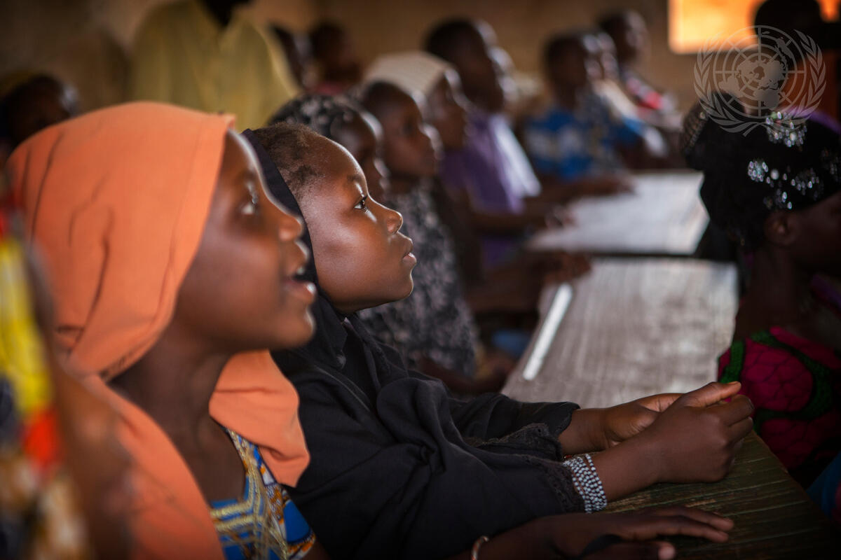 Young girls at a UNICEF (UN Children’s Fund) project in Mopti, Mali, during the visit of visit of Peter Drennan, UN Under-Secretary-General for Safety and Security.