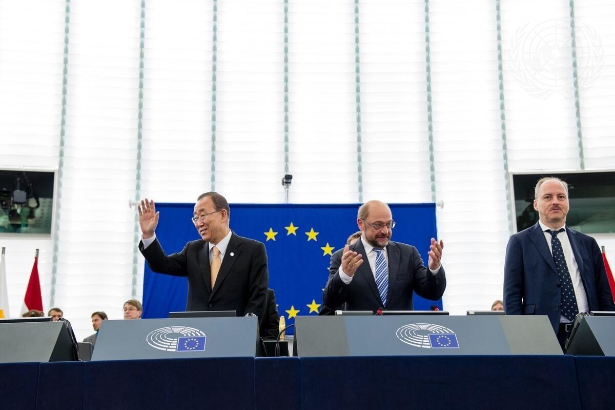 The Secretary-General (centre left) with Martin Schulz (centre right), President of the European Parliament, during the session.