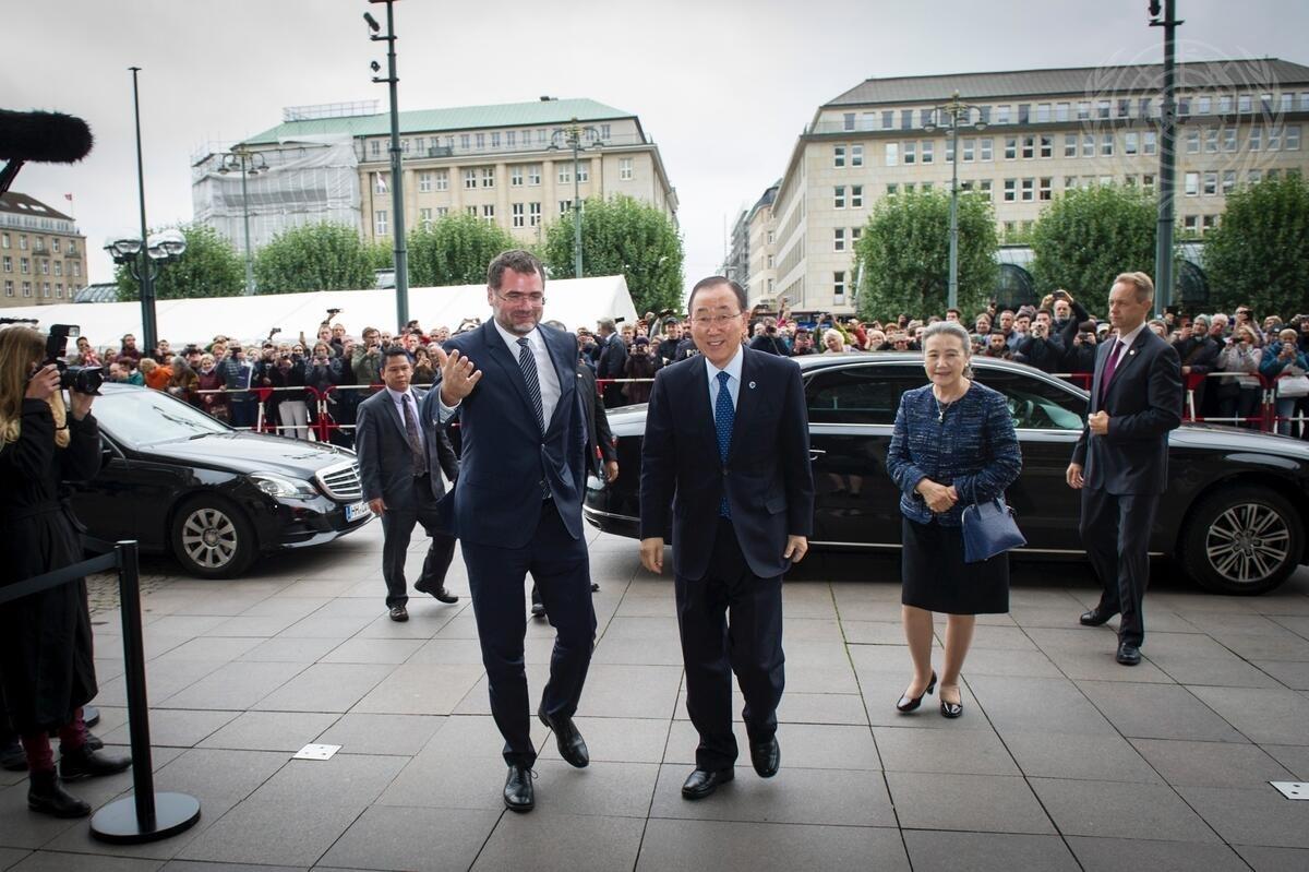 Secretary-General Ban Ki-moon arrives at Hamburg City Hall