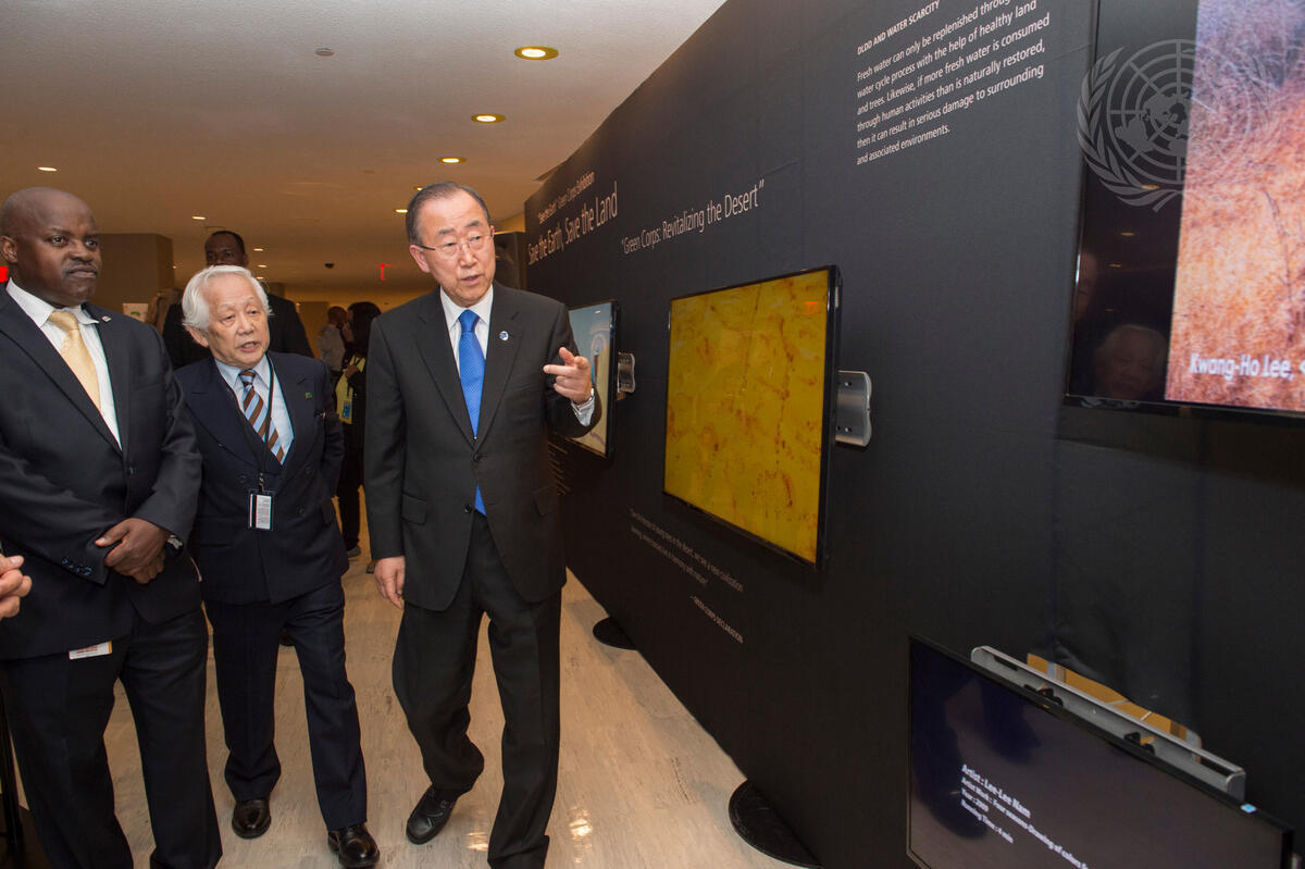 Secretary-General Ban Ki-moon attends the opening of an exhibition by Green Corps entitled, Save the Earth, Save the Land.