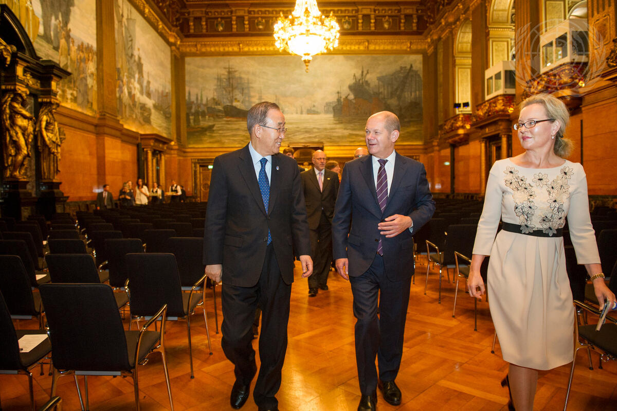 Secretary-General Ban Ki-moon (left) meets with Olaf Scholz, Mayor of the City of Hamburg.