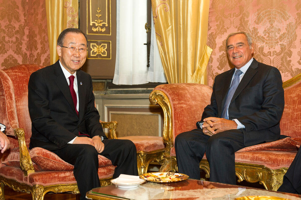 Secretary-General Ban Ki-moon (left), meets with Pietro Grasso, President of the Senate of Italy.