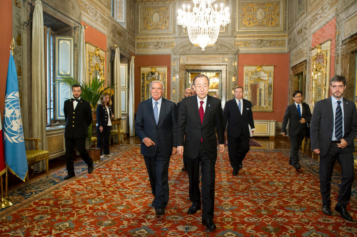 Secretary-General Ban Ki-moon (centre), meets with Pietro Grasso (centre left), President of the Senate of Italy.
