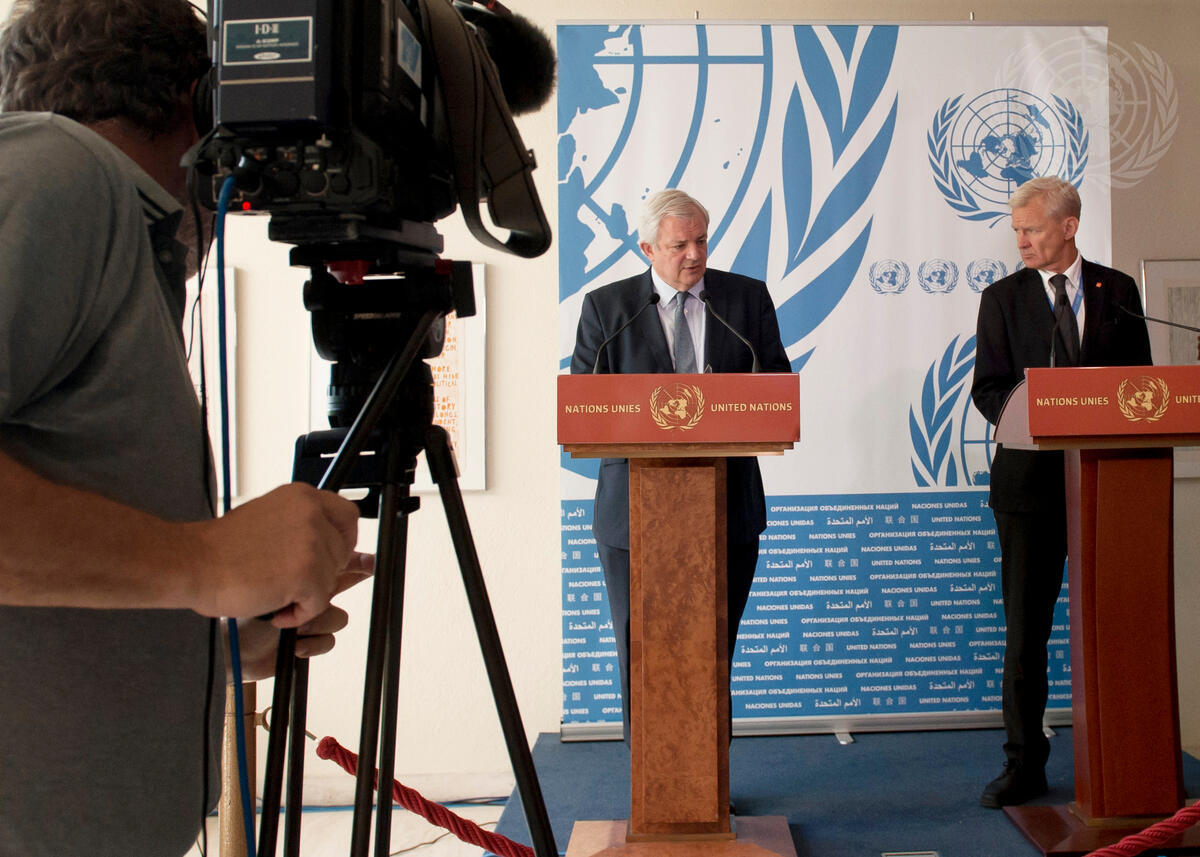 Jan Egeland (right), Special Adviser on Conflict Prevention and Resolution Issues, also briefed.