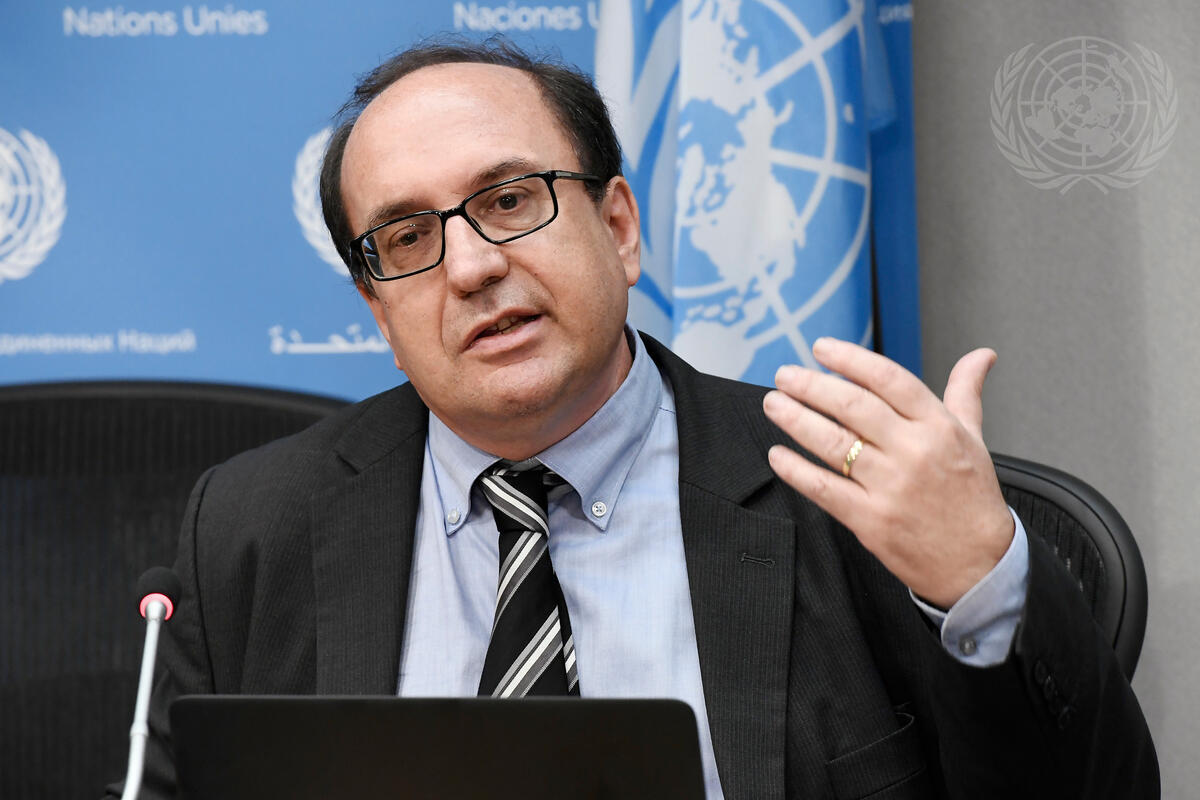Thomas Pietschmann, Research Officer at the UN Office on Drugs and Crime (UNODC), briefs journalists on the launch of the 2017 World Drug Report.