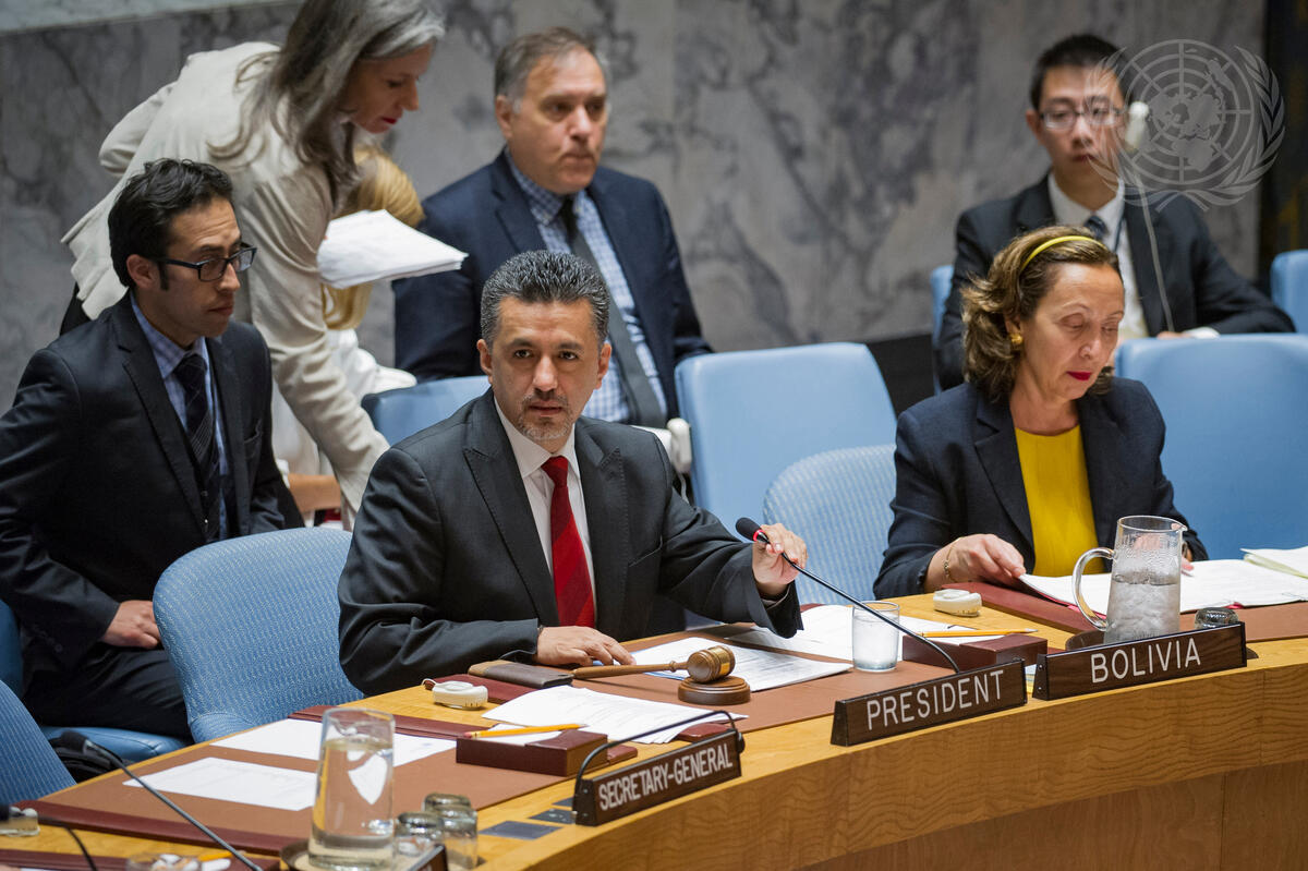 Sacha Sergio Llorentty Solíz (front left), Permanent Representative of the Plurinational State of Bolivia to the UN and President of the Security Council for June, chairs the Council’s debate on non-proliferation of weapons of mass destruction.