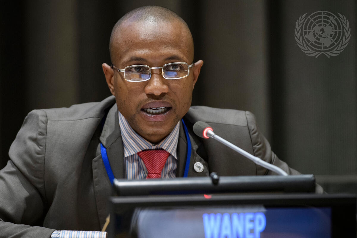 Boubacar Thera, West Africa Network for Peacebuilding in Mali, addresses a high-level event on “Human security and its contribution to Agenda 2030”. The discussion was co-organized by the Permanent Mission of Japan, the Member States of the Human Security Network (Austria, Chile, Costa Rica, Greece, Ireland, Jordan, Mali, Norway, Panama, Slovenia, Switzerland and Thailand, with South Africa as an observer) and the United Nations Human Security Unit.