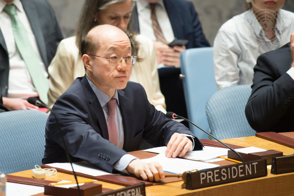 Liu Jieyi, Permanent Representative of the People’s Republic of China to the United Nations and President of the Council for July, chairs the meeting.