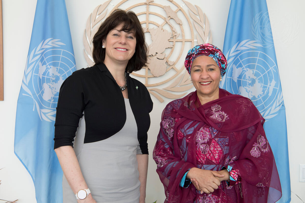 Deputy Secretary-General Amina Mohammed (right) meets with Claire Perry, Minister of State for Energy and Clean Growth of the United Kingdom of Great Britain and Northern Ireland.