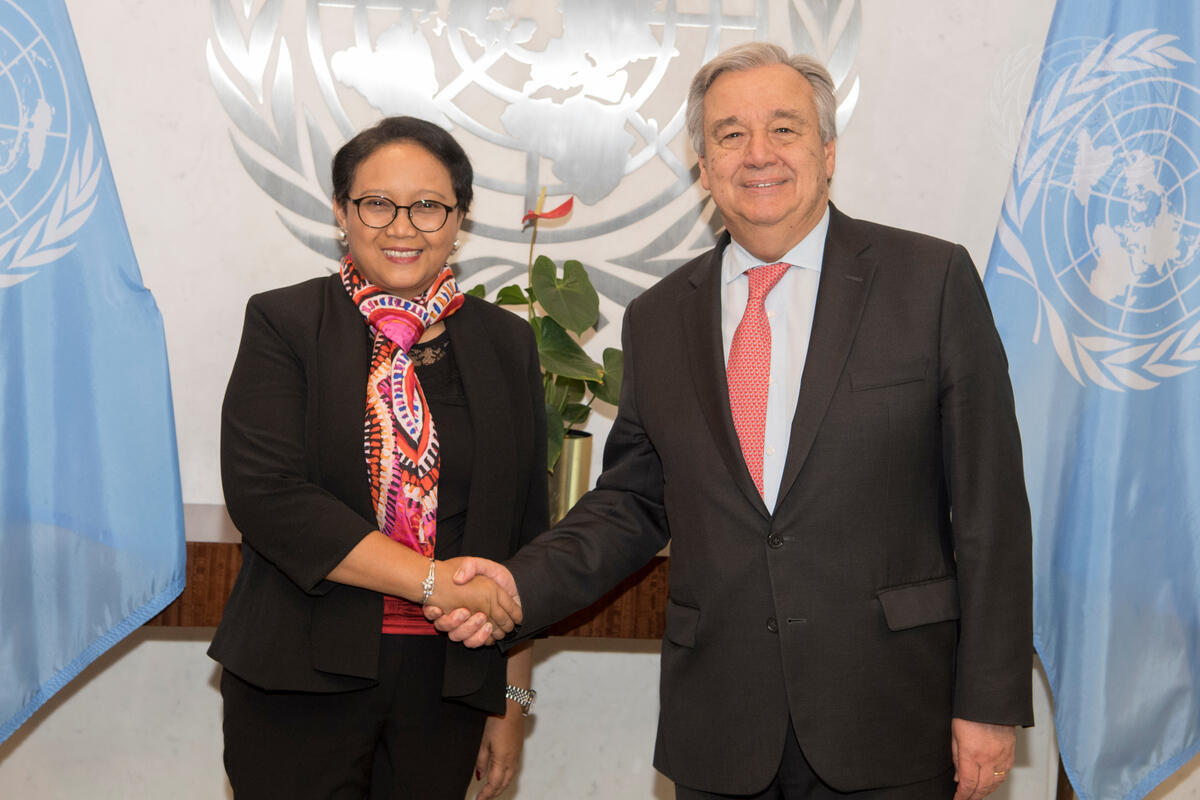 Secretary-General António Guterres meets with Retno Lestari Priansari Marsudi, Minister for Foreign Affairs of the Republic of Indonesia.