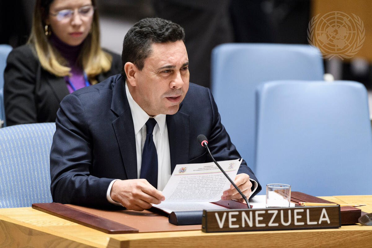 Samuel Moncada, Permanent Representative of the Bolivarian Republic of Venezuela to the United Nations, addresses the Security Council meeting on collective action to improve United Nations Peacekeeping Operations.