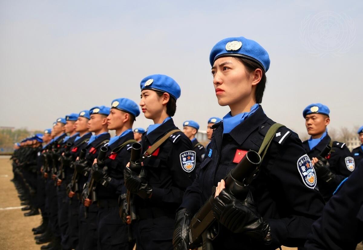 Chinese peacekeepers demonstrate a training exercise.