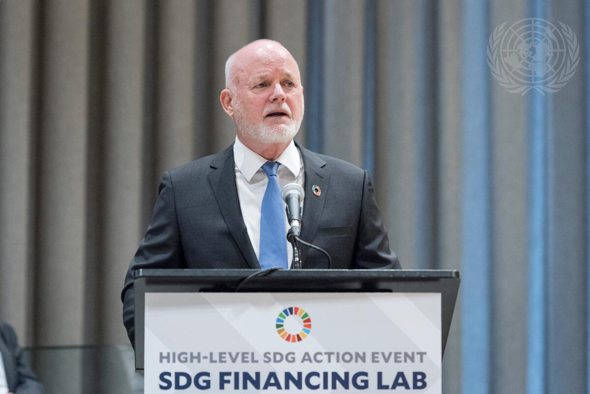 Peter Thomson, President of the seventy-first session of the General Assembly, offers opening remarks at a high-level Sustainable Development Goal (SDG) Action Event held to highlight the critical importance of sustainable finance for the achievement of the goals, including climate action. The event, convened by Peter Thomson, President of the seventy-first session of the General Assembly, focused on how to drive the transformation to align financial markets with sustainable development and served to showcase concrete ways in which member states can approach the financing of different SDGs.