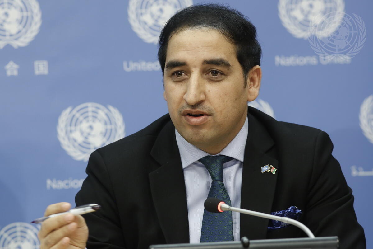 Nazifullah Salarzai, Deputy Permanent Representative of Afghanistan to the UN, briefs journalists on the occasion of the International Day for Mine Awareness and Assistance in Mine Action (4 April). He was joined in addressing reporters by Agnès Marcaillou, Director of the UN Mine Action Service (UNMAS), Department of Peacekeeping Operations; and Inigo Lambertini, Deputy Permanent Representative of Italy.