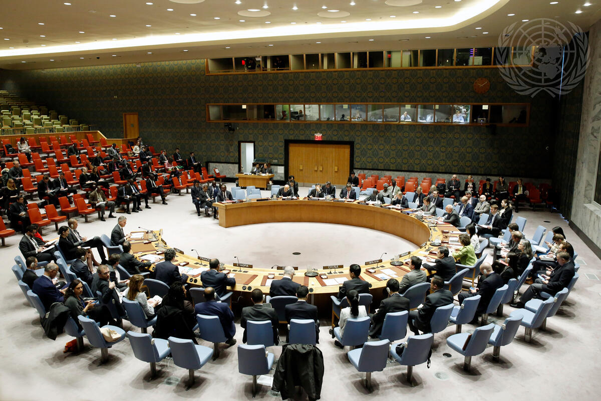 A wide view of the Security Council meeting on the situation in Mali.