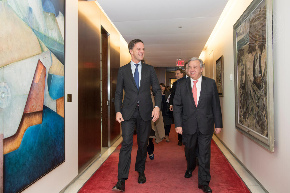 Secretary-General António Guterres (right) meets with Mark Rutte, Prime Minister of the Kingdom of the Netherlands.