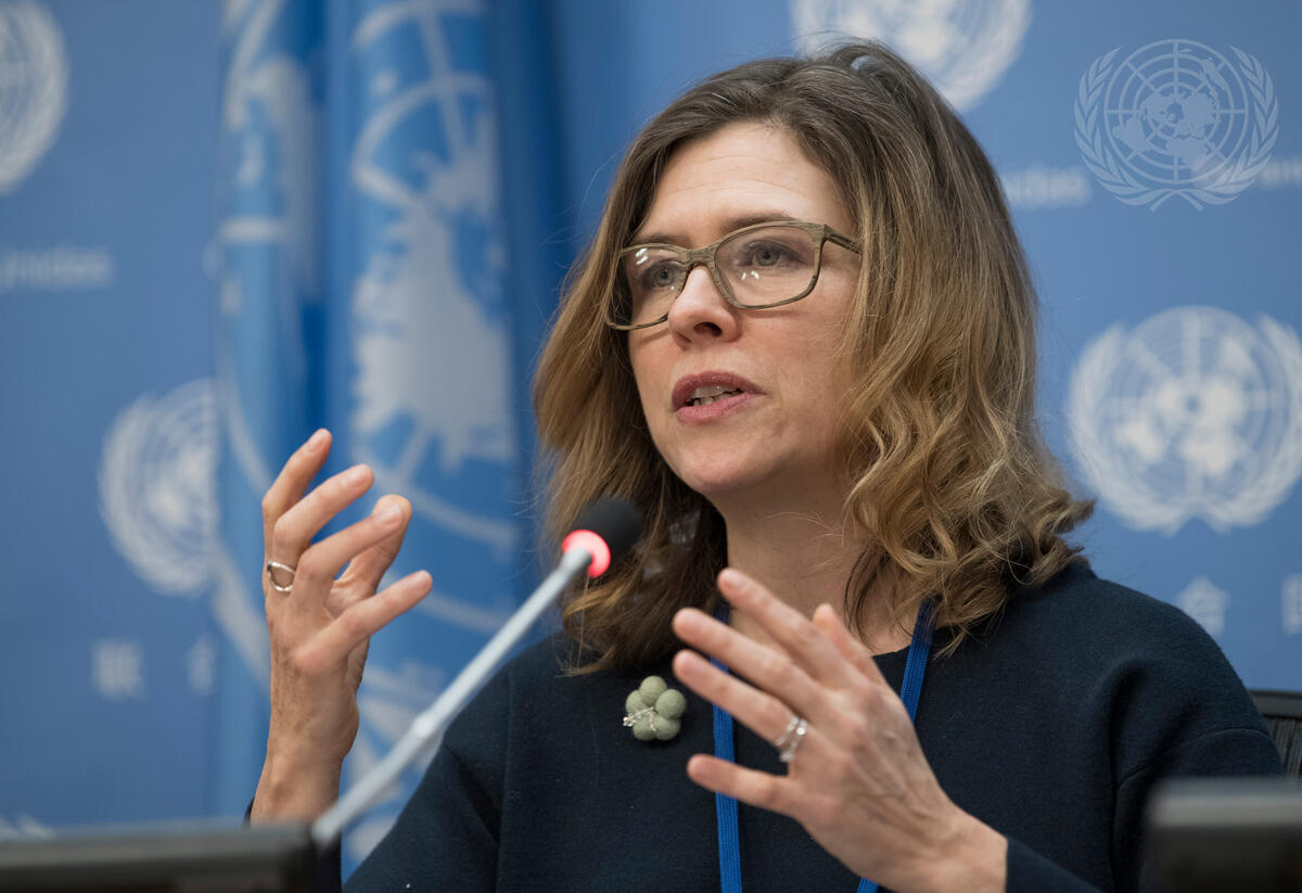 Leanne Burney, Programme Officer at UN-Water Technical Advisory Unit, briefs journalists on the occasion of World Water Day (22 March).