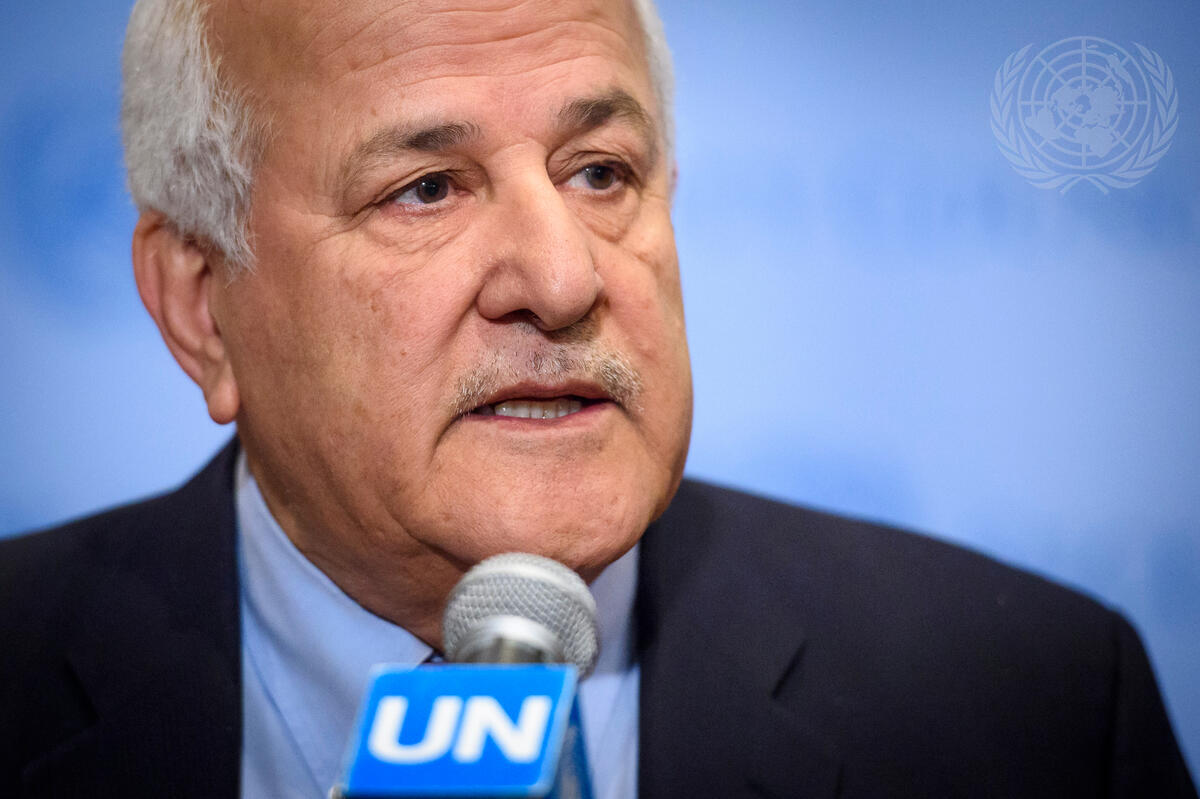 Riyad H. Mansour, Permanent Observer of the State of Palestine, briefs journalists after the Security Council meeting and consultations on the situation in the Middle East.