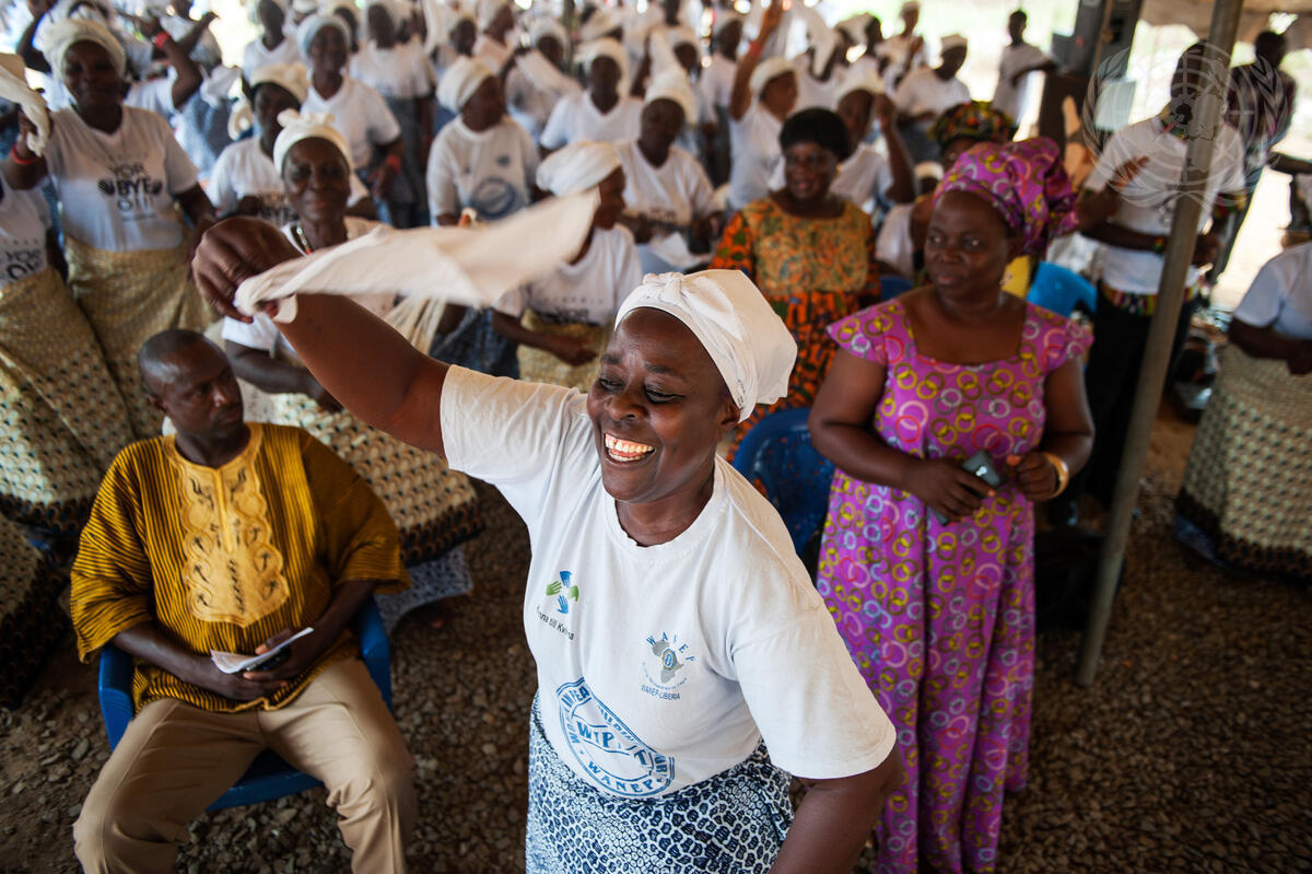 Traditional Liberian communicators dance during the farewell to the United Nations Mission in Liberia (UNMIL) in the streets of Monrovia. The traditional communicators, members of eleven cultural organisations, have been hired by the Public Information Office in UNMIL for the past months to disseminate messages on the UNMIL termination, scheduled for 30 March, and to announce that the United Nations, through its agencies, will continue to support the country in its efforts to work towards a sustainable peace and to ensure access to education, healthcare, food security, and humanitarian and development assistance.