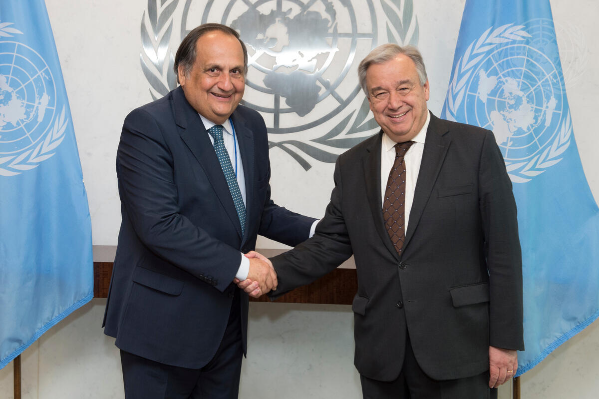 Secretary-General António Guterres (right) meets with Joaquín Alexander Maza Martelli, Permanent Representative of El Salvador to the UN Office at Geneva (UNOG) and President of the Human Rights Council.