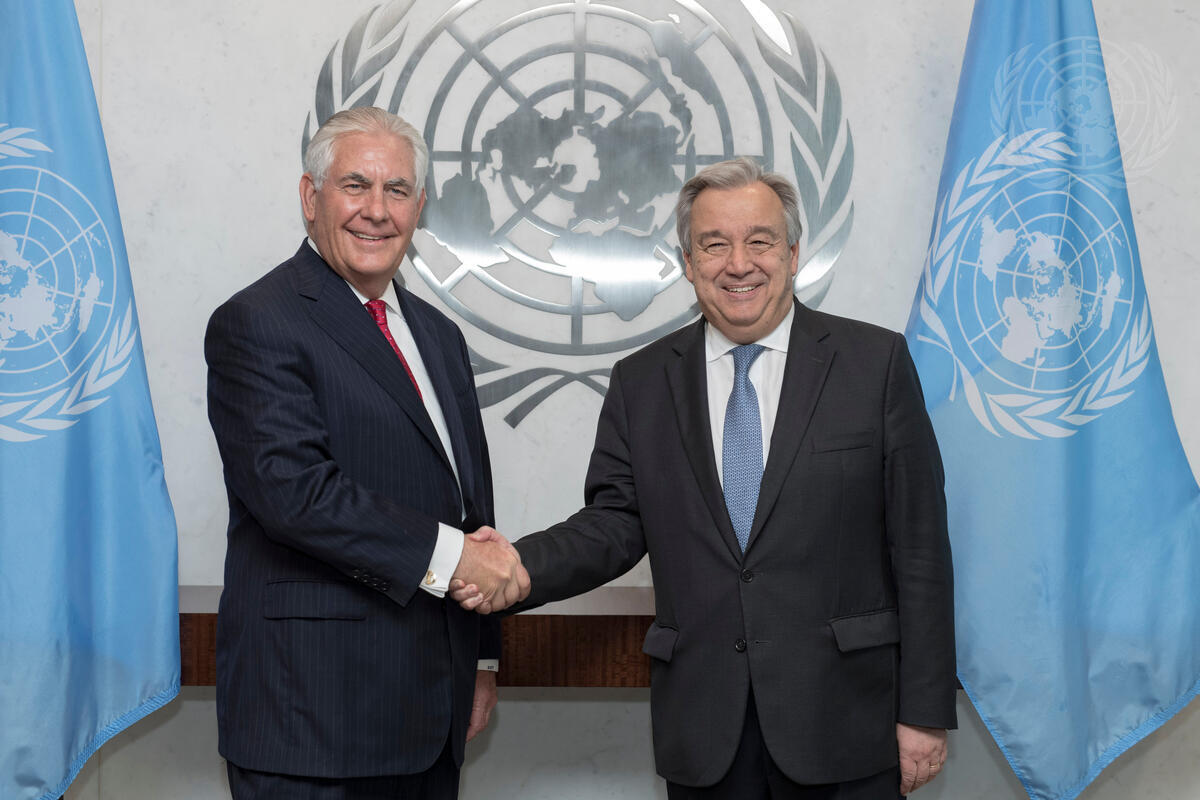 Secretary-General António Guterres (right) meets with Rex W. Tillerson, United States Secretary of State.