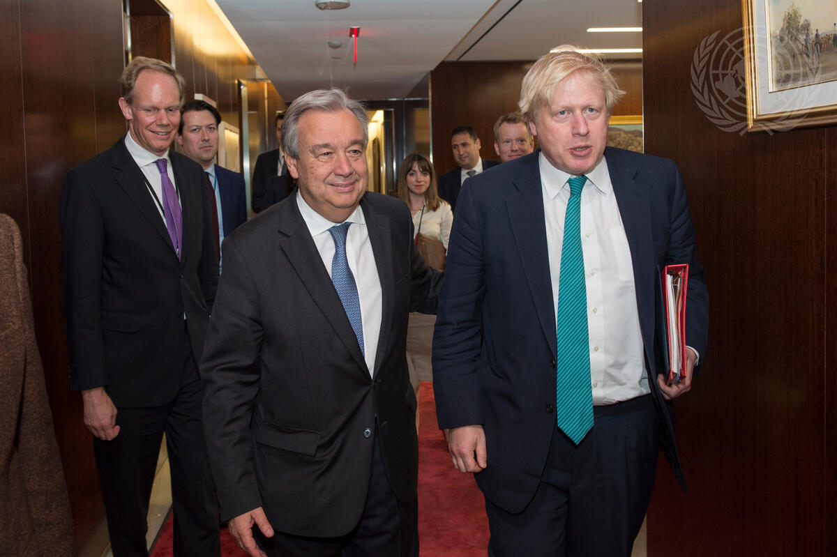 Secretary-General António Guterres meets with Boris Johnson (right), Secretary of State for Foreign and Commonwealth Affairs of the United Kingdom.