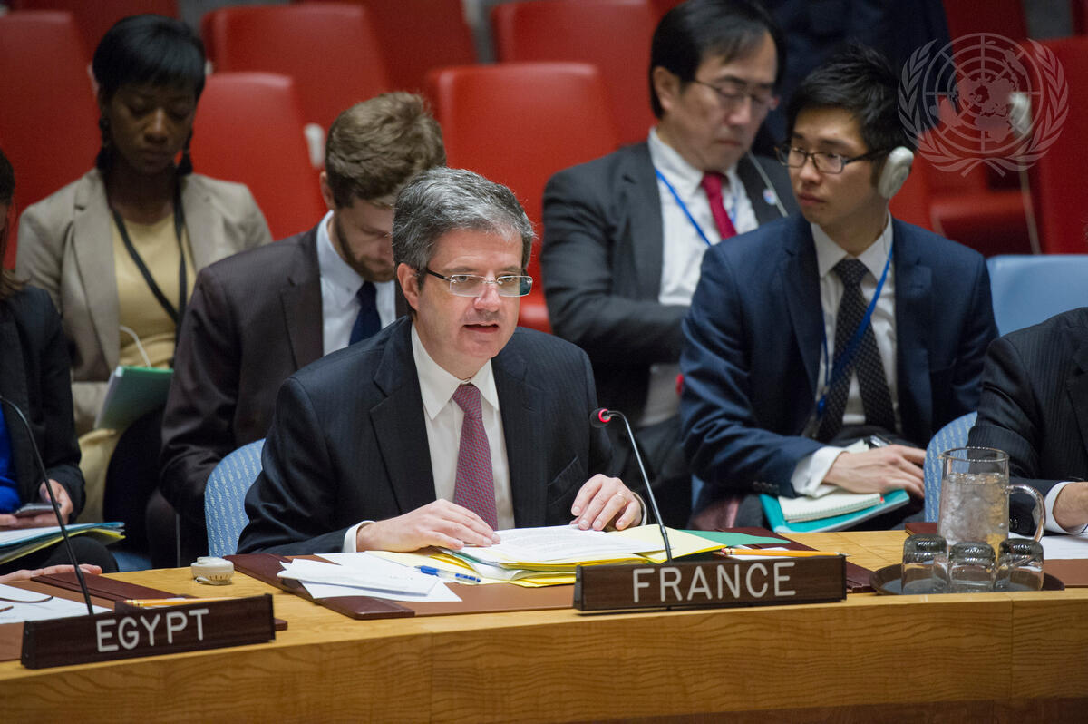 François Delattre, Permanent Representative of France to the United Nations, speaks during the Security Council meeting on the situation in the Democratic Republic of the Congo (DRC) and Angola.
