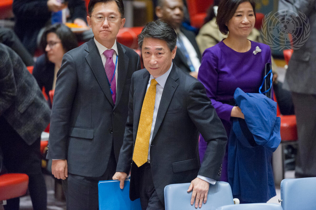 Oh Joon (centre), Permanent Representative of the Republic of Korea to the UN, prepares to address the Security Council.