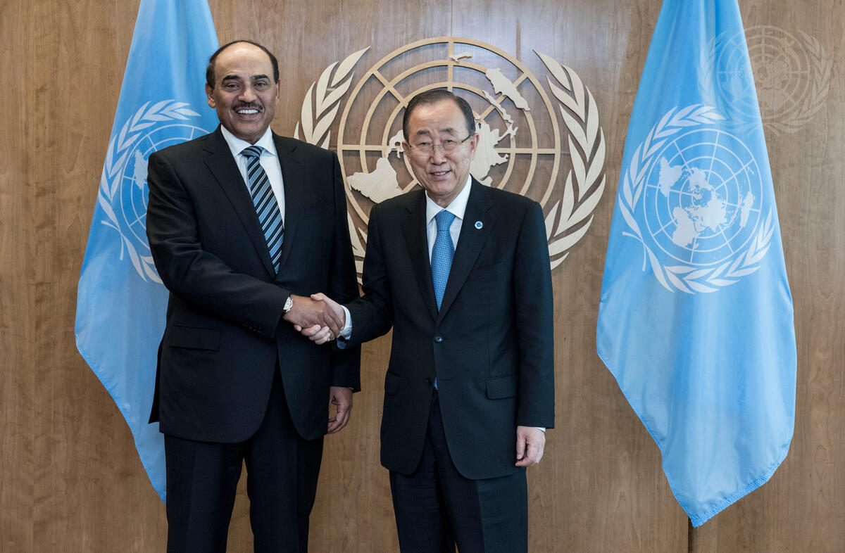 Secretary-General Ban Ki-moon (right) meets with Sheikh Sabah Khalid Al Hamad Al Sabah, First Deputy Prime Minister and Minister for Foreign Affairs of the State of Kuwait.