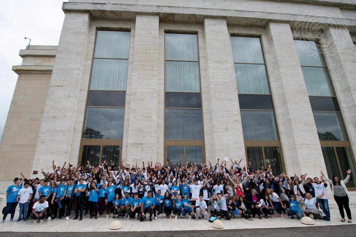 Group photo after the ceremony of ""Educating the Future"" for 250 young migrants to discover the role of international Geneva and converse with international offcials.