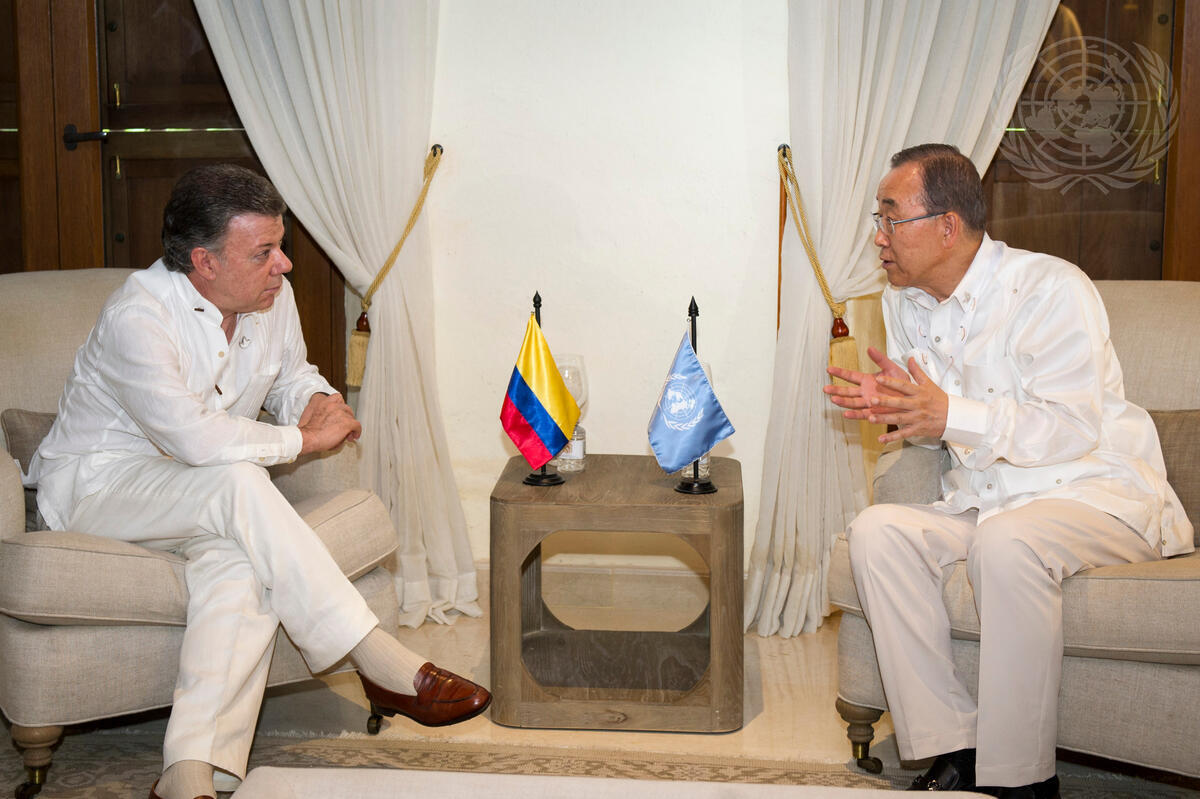 Secretary-General Ban Ki-moon meets with Juan Manuel Santos Calderón, President of Colombia, in Cartagena.
