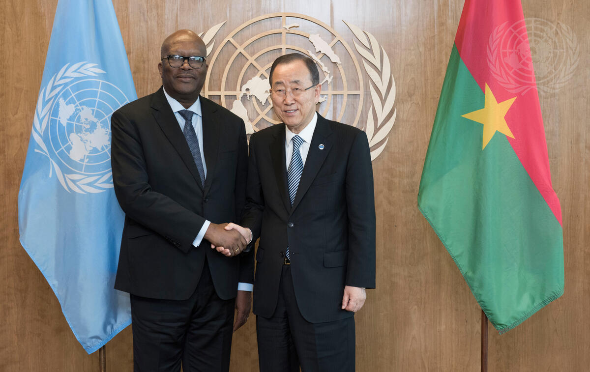 Secretary-General Ban Ki-moon (right) meets with Roch Marc Christian Kaboré, President of Burkina Faso.